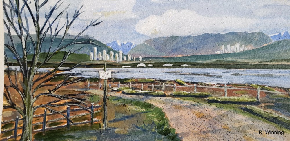 Centenial Beach Pathways Description: Looking north to the Mountains of Vancouver | 8 x 10 | $145