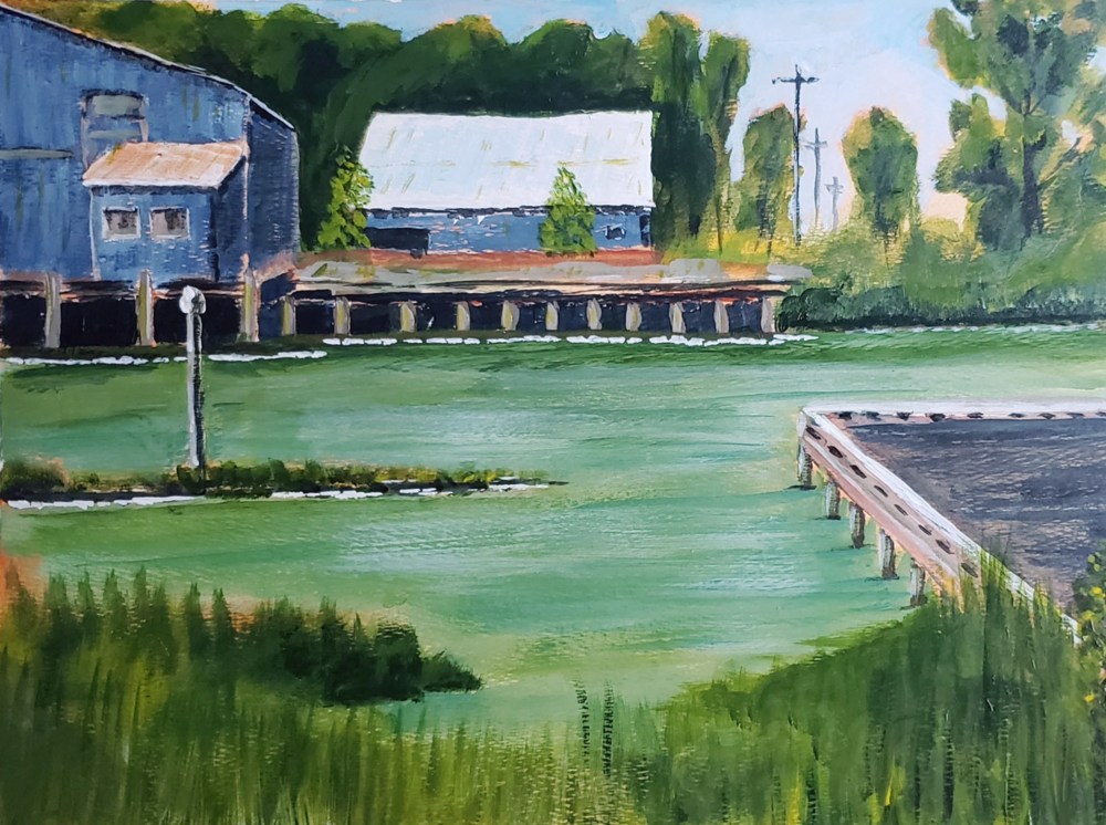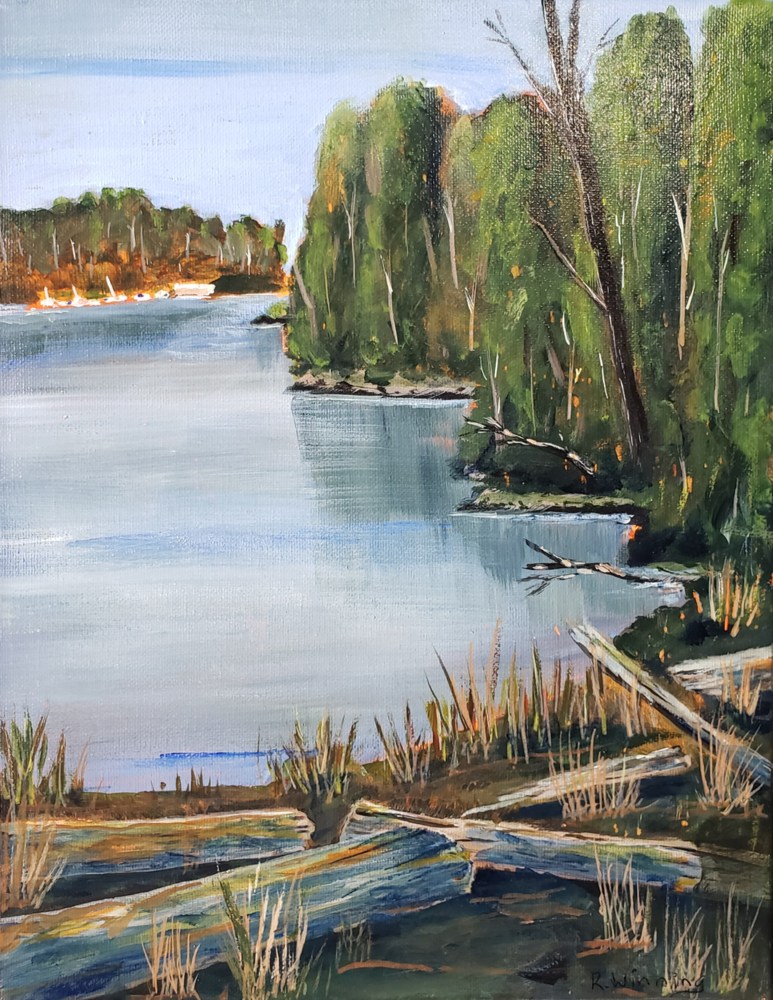 Deas Slough Ladner BC Description: Painted from the Delta Deas Rowing club located on Deas Island Regiional Park | 11 x 14 framed | $275
