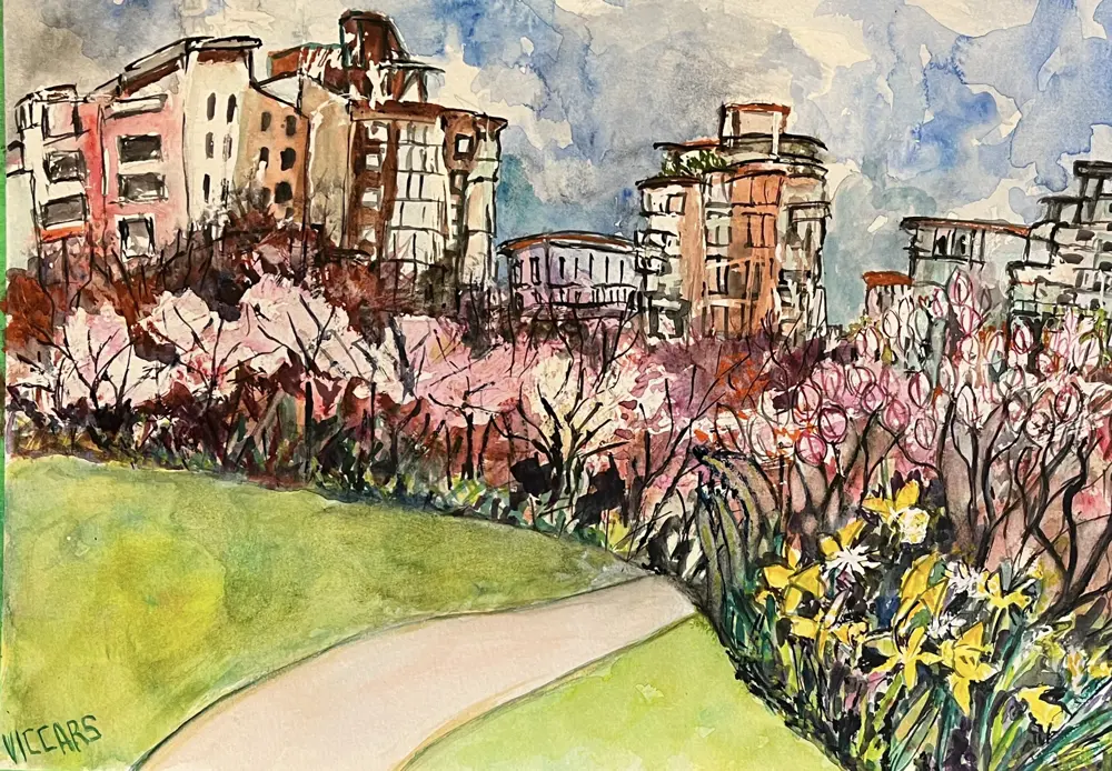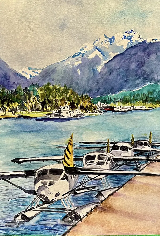 I’m a happily mainly retired art educator and now a painter for pleasure. I enjoy painting en plein air and in my little detached home studio in historic Steveston, mainly using water colour and acrylic. My favorite element is colour, I like to use it boldly, My work is somewhat realistic but my goal isn’t to reproduce photographic reality. Painting is a regular part of my life, it helps me take the world in with eyes that look a little deeper at the details.